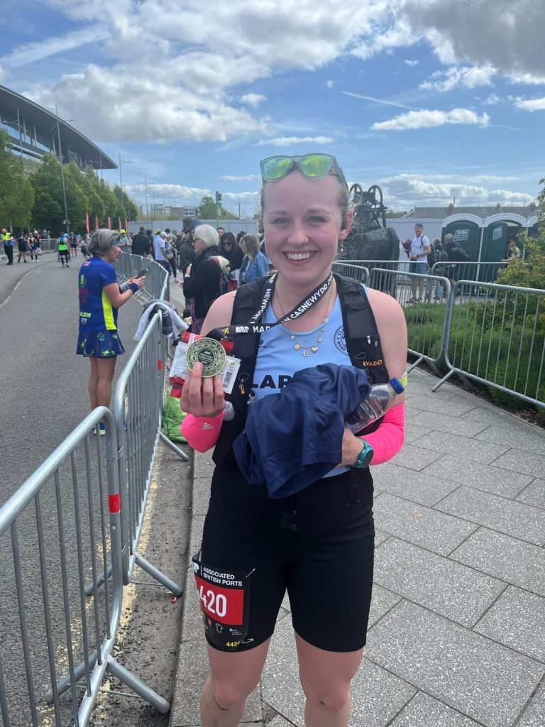“It was a wonderfully flat course so I think many people got PBs on Sunday (including my dad who did the 10K)! However that might have been the first day I’ve ever sustained a sunburn in South Wales in April, and made it my mission just to get round and get the t shirt! Would definitely recommend to anyone after a marathon PB.”